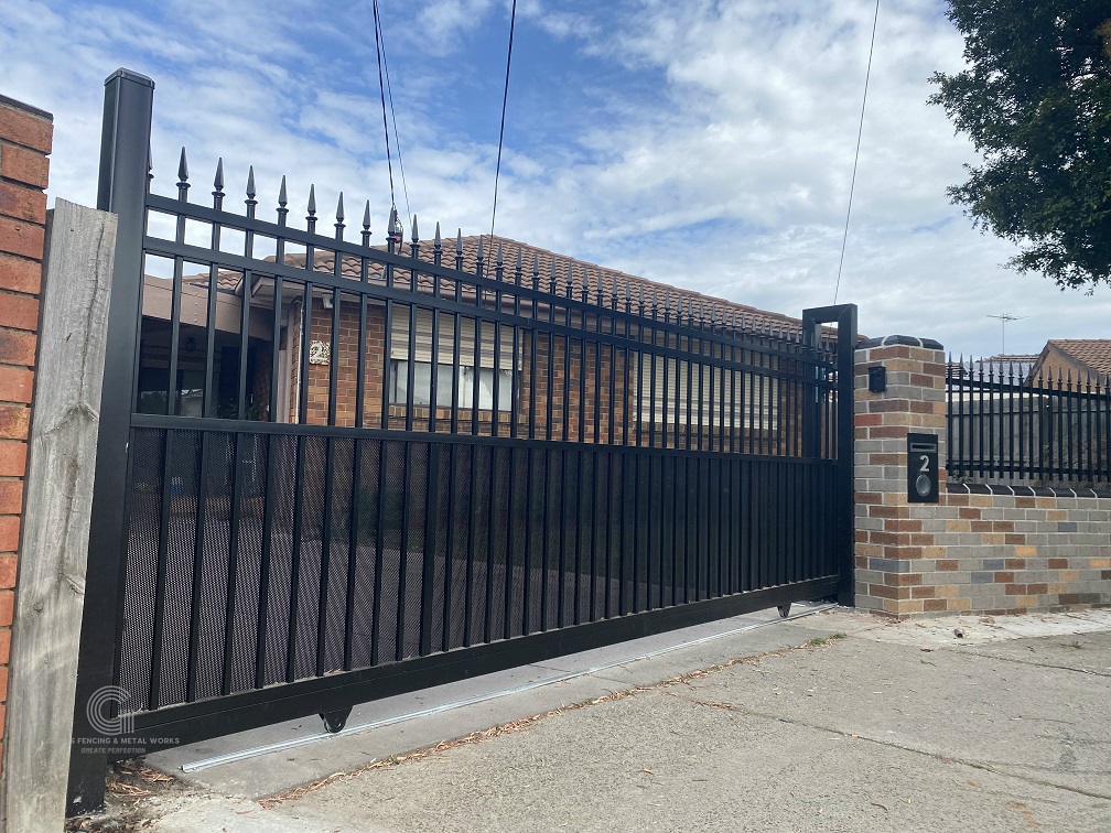 Spear Top Sliding with Perforated Screen Cladding the Bottom.