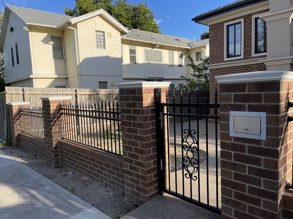 Classic ring and spear with wrought iron scroll to match with existing scroll in first floor balcony balustrade