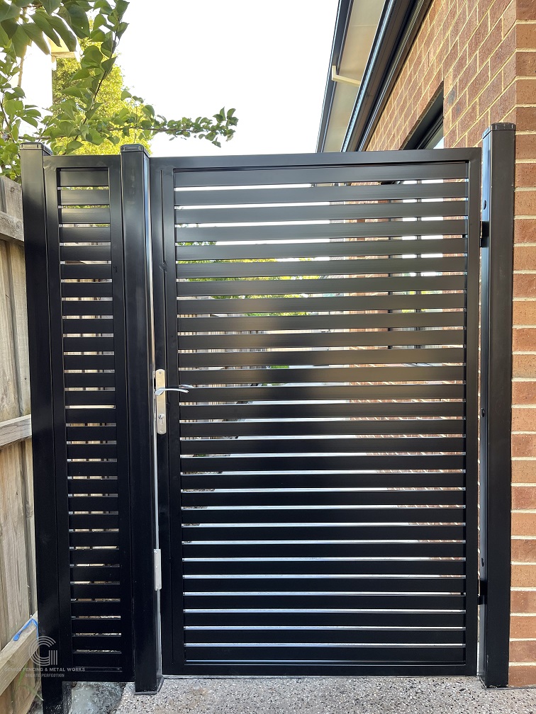 Side gate made in horizontal slat style to achieve perfect balance of privacy protection and visiblity