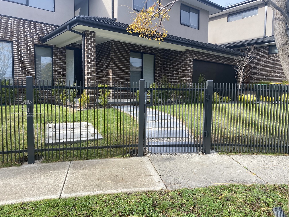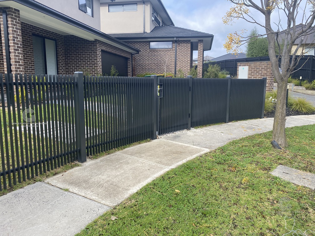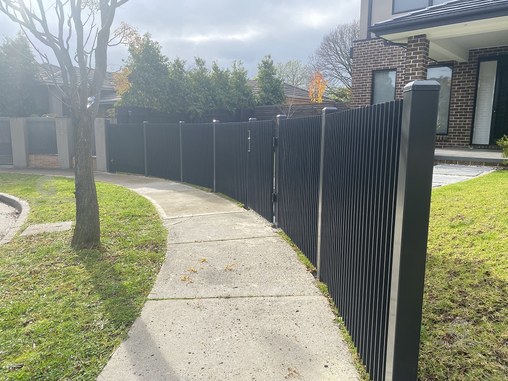 Vertical Blade in Monument Colour, Level out at same finish high in a curving court site