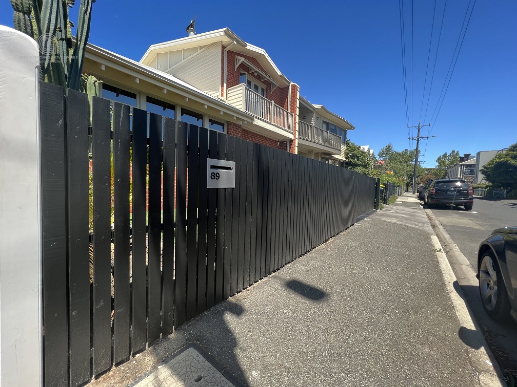 Steel post and frame behind pickets offering superb structural stability and endurance.