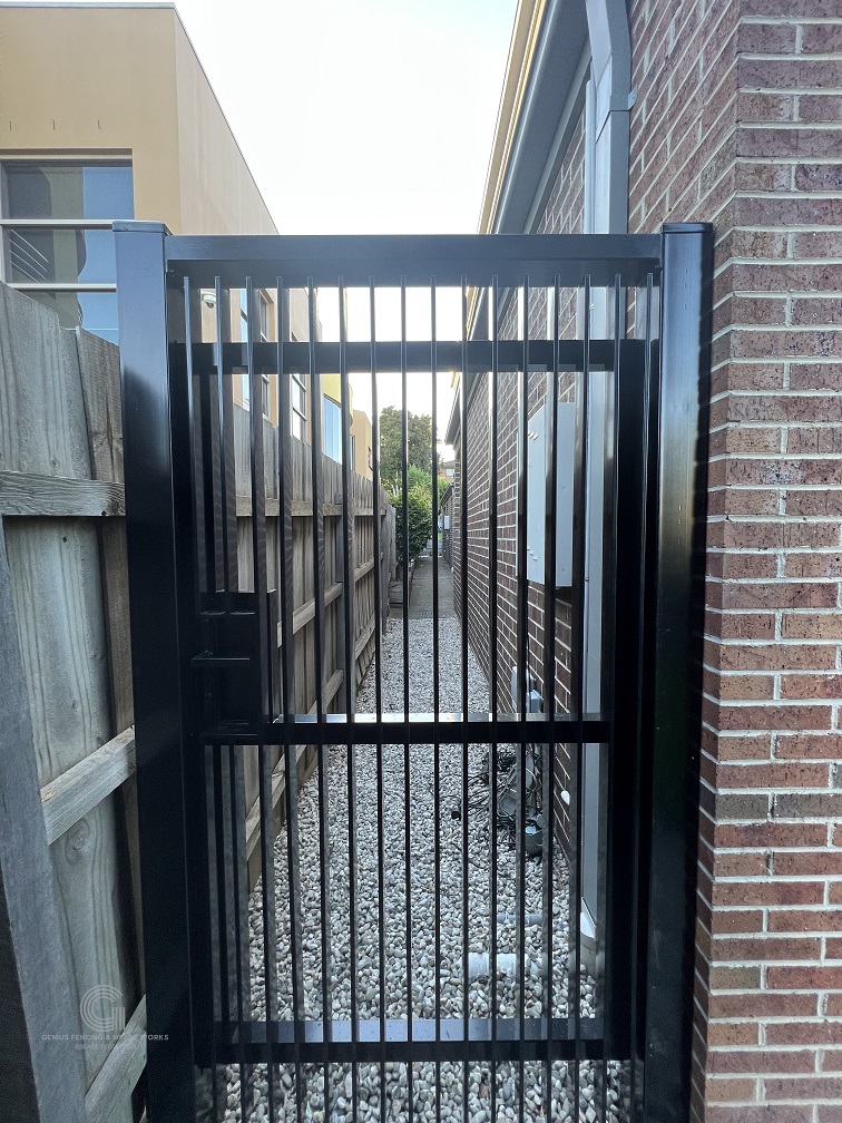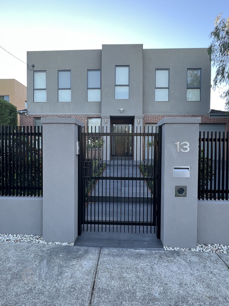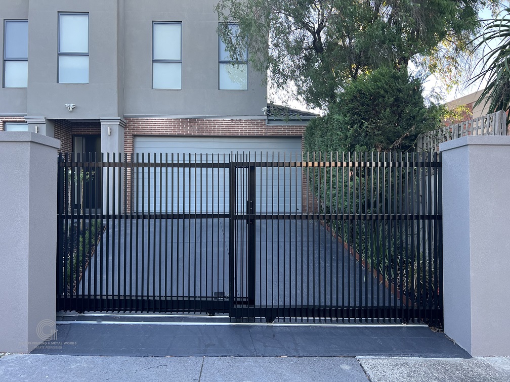 Signature telescopic sliding gate in 1.8 meter high finish with brick infill panels