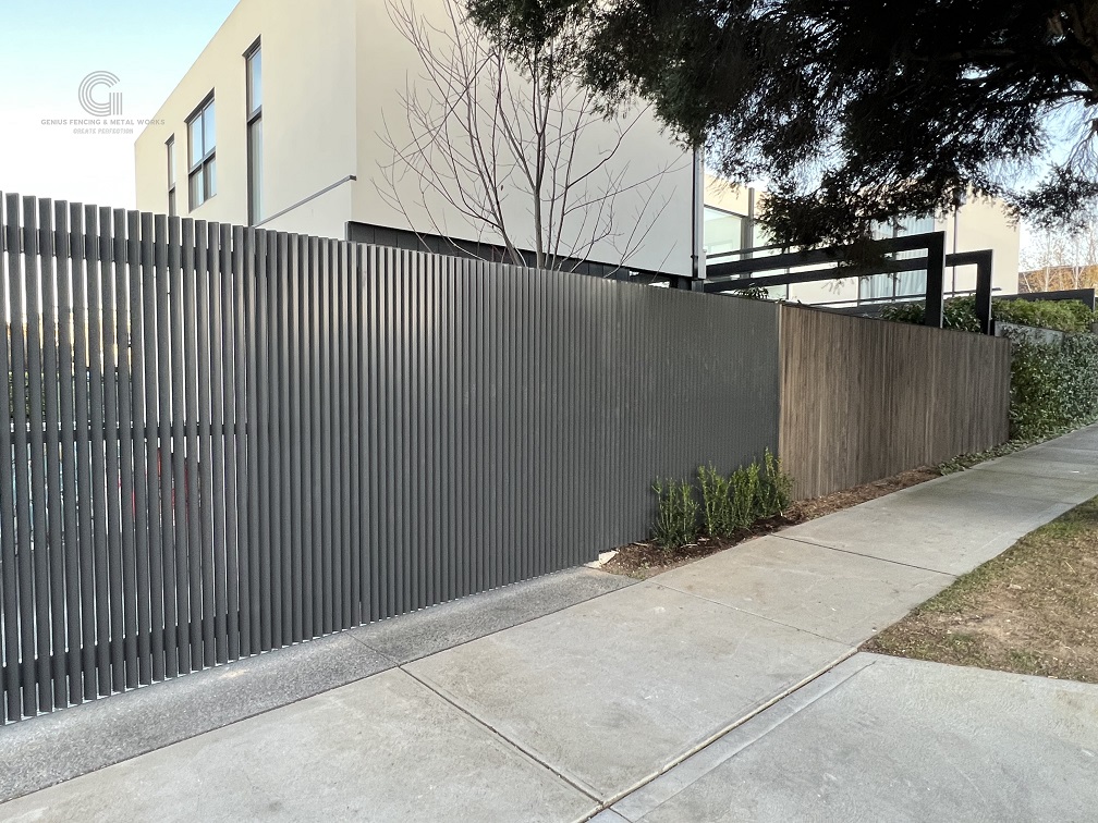 Vertical Lourve Fence and Double Gate with invisible post