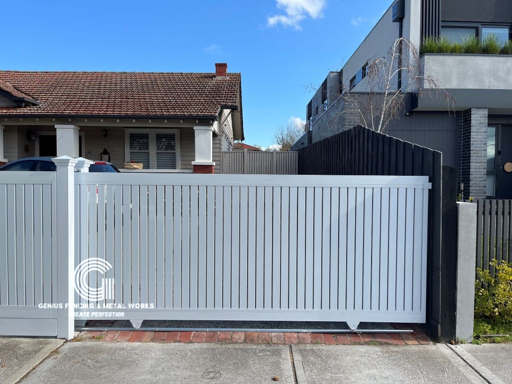 Residential Project based in Murrumbeena, VIC: A brand-new custom-made Pearl White aluminium fence and sliding gate have given the home a refreshed look.