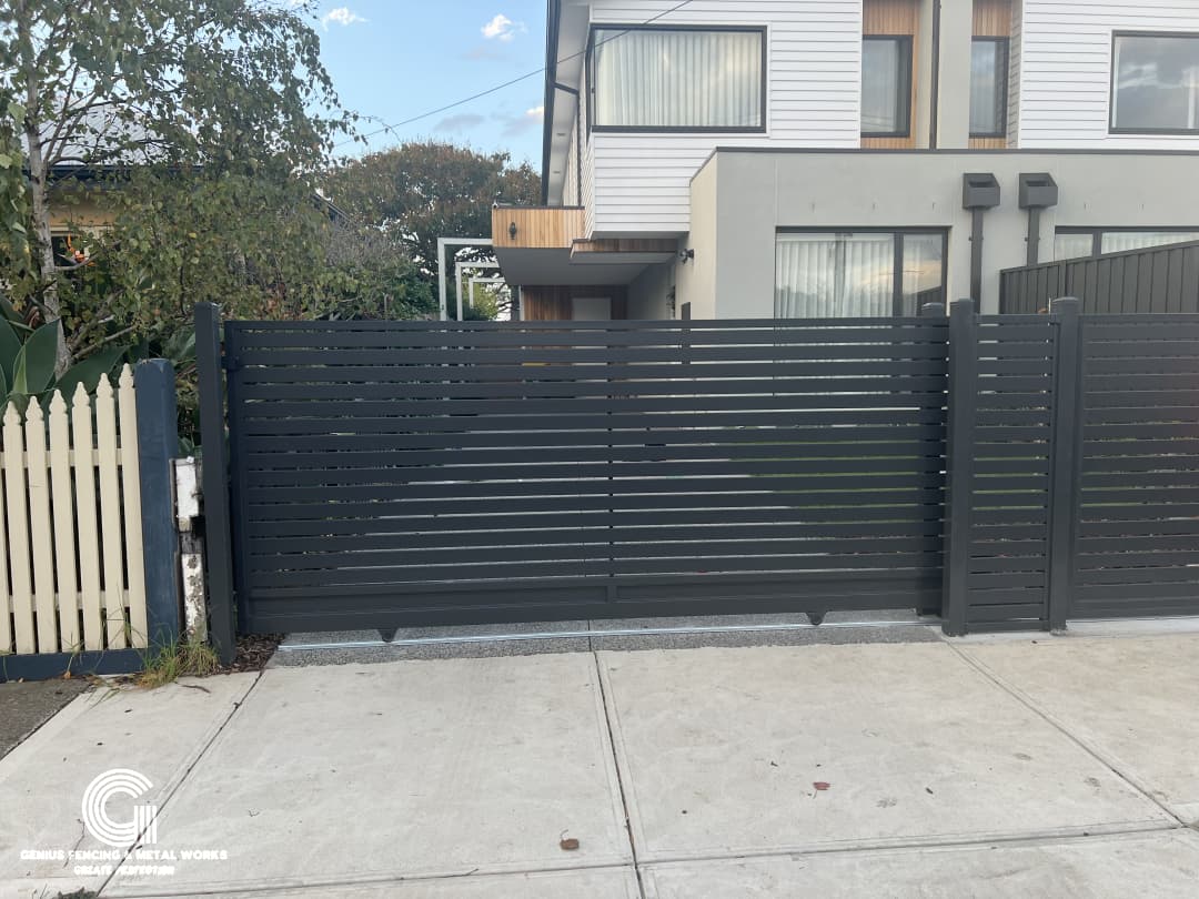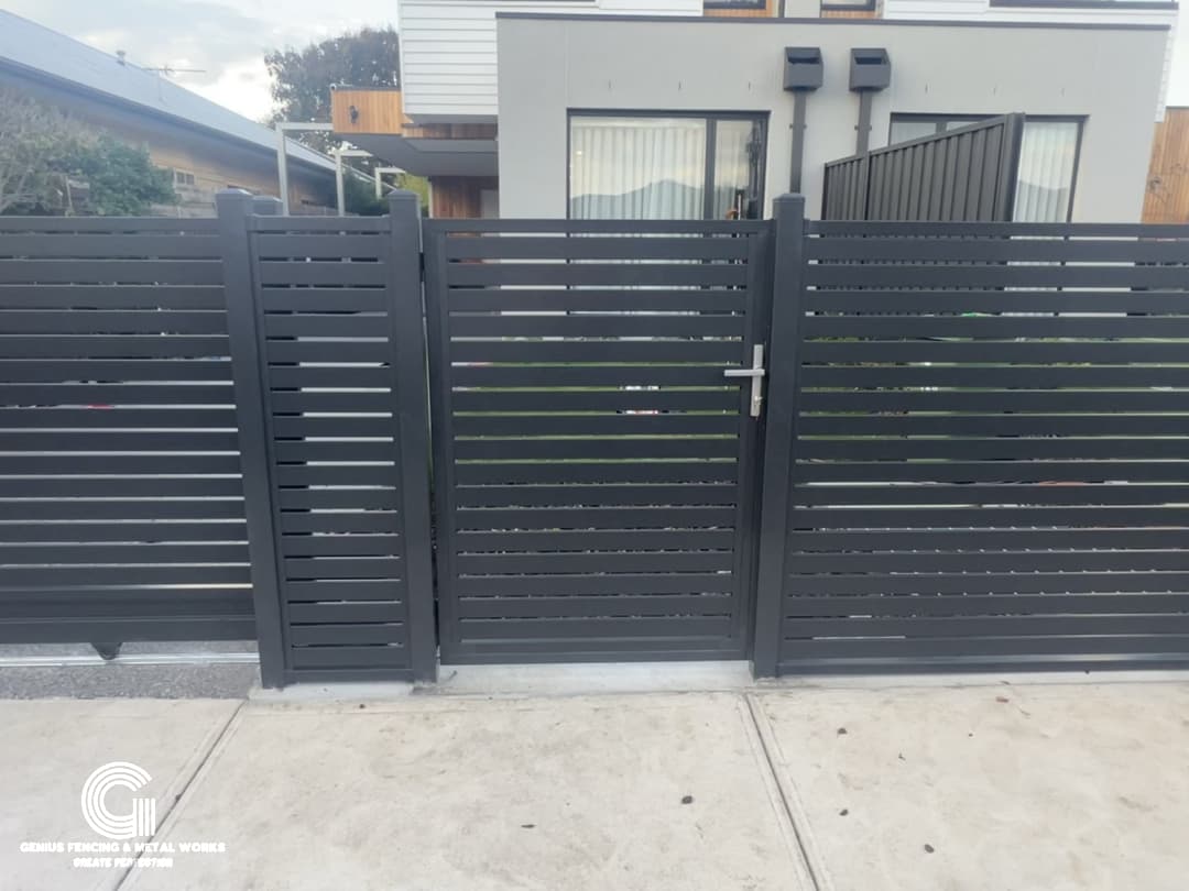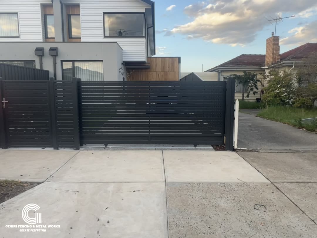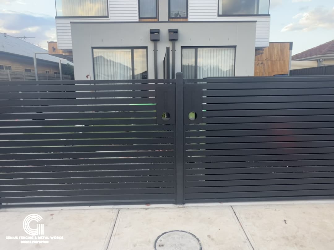 Dural Occupancy Residential Project Based in West Footscray: Fully Custom-Made Aluminium Slat Fencing and Gates. All in One job, Both Families Enjoy Beautiful Fences, Automatic Gates and Good Privacy.