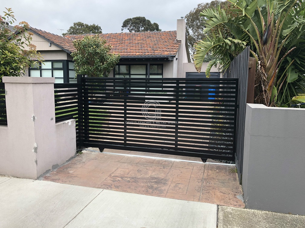 Aluminium Horizontal Slat On Brickworks - Sliding Gate - 25mm Gap
