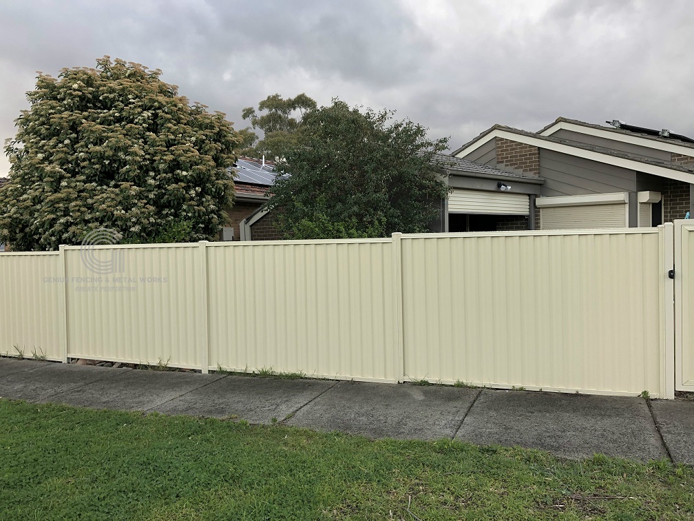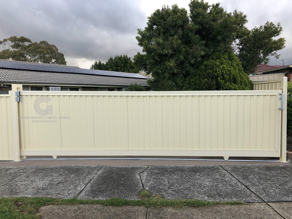 Colorbond Fence, Pedestrain Gate and Manual Sliding Gate in Domain Colour.
