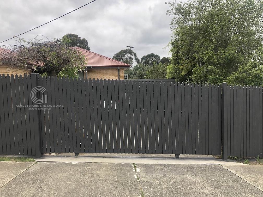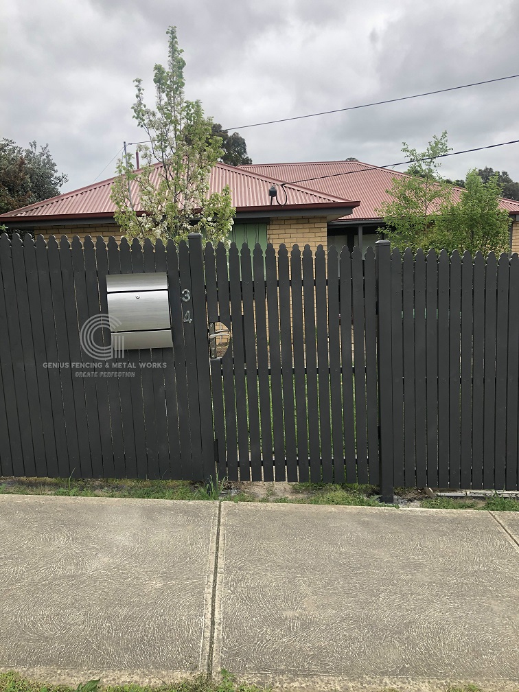 Steel Frame with Cypress Pine Lonsdale Fence Picket in Monument Colour